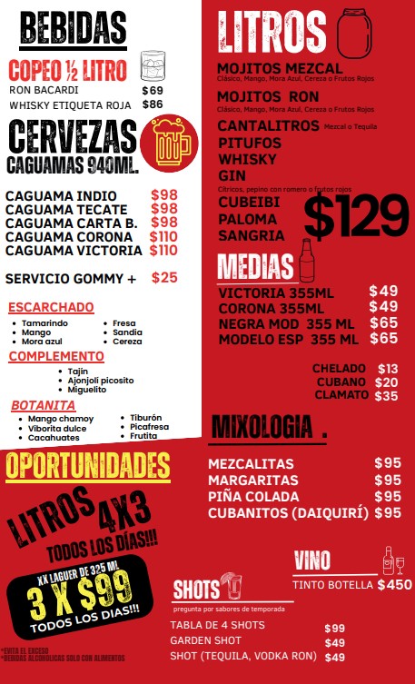 Disfruta de una gran variedad de anacks y drinks para pasarla increíble en fin de semana.